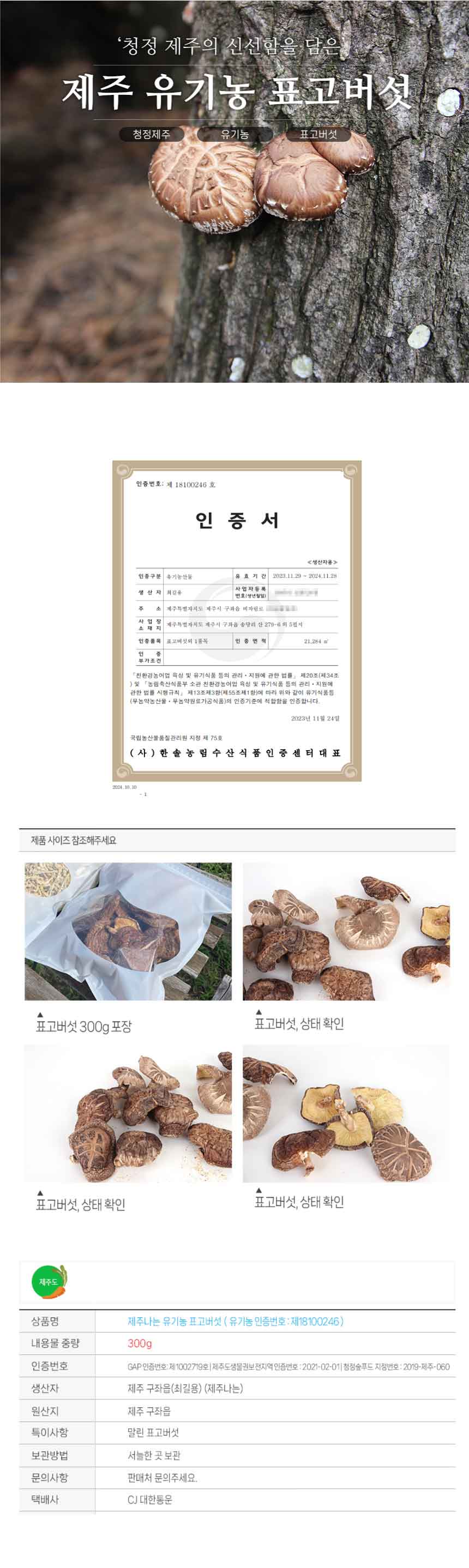 제주 유기농 표고버섯 300g