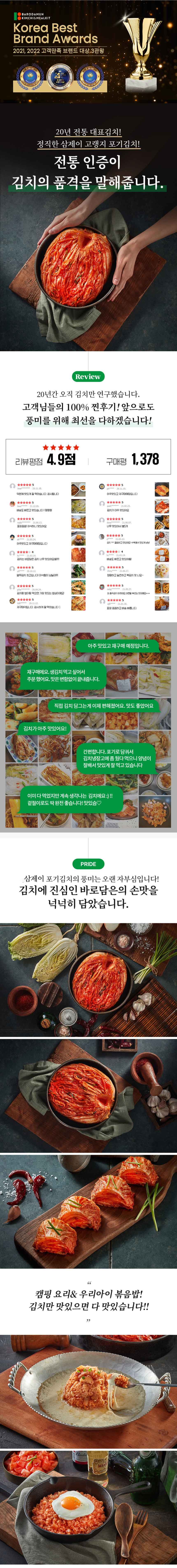국산 100% 삼제이 서울식 포기김치3kg